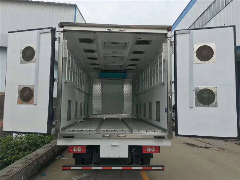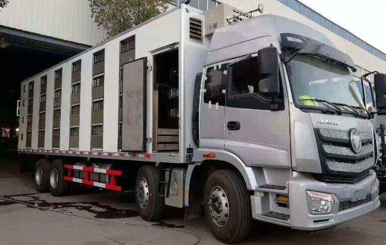 【豬苗車】上裝配置:外玻璃鋼,內(nèi)不銹鋼,兩層液壓升降層板,尾部液壓翻轉上豬平臺,層板為不銹鋼骨架鋪鋁花紋板。外部電動升降窗,排氣扇,柴油發(fā)電機,暖風加熱,喂水系統(tǒng),凈水箱、污水箱,箱內(nèi)攝像頭監(jiān)控,倒車影像,凱利制冷機組。(油暖加熱為選裝部件)整車長度12000*2550*3970,箱體長度9600*2340*2540(8660 裝載長),發(fā)動機:康明斯機320.